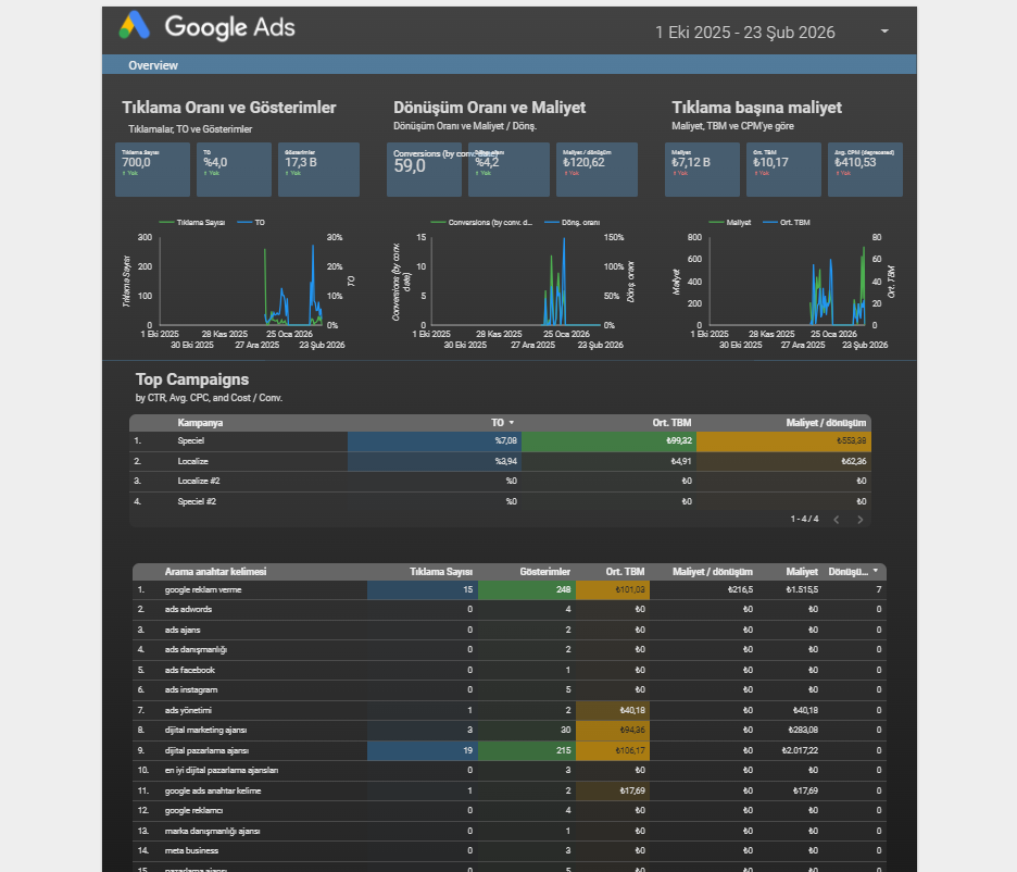 Reklam performansını izlemek için reklam metriklerini takip ederiz. Tıklama oranı, dönüşüm oranı, maliyet per tıklama gibi verileri analiz eder ve performans raporları oluştururuz. Bu raporlarla reklam kampanyalarınızın nasıl performans gösterdiğini anlamanızı sağlarız.
